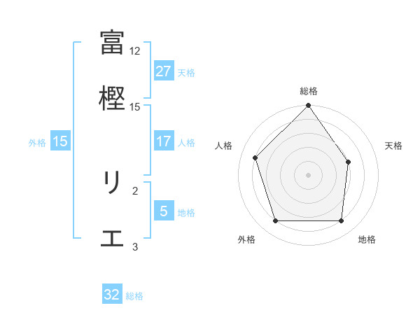 富樫 リエさんの総格は32画の5点!