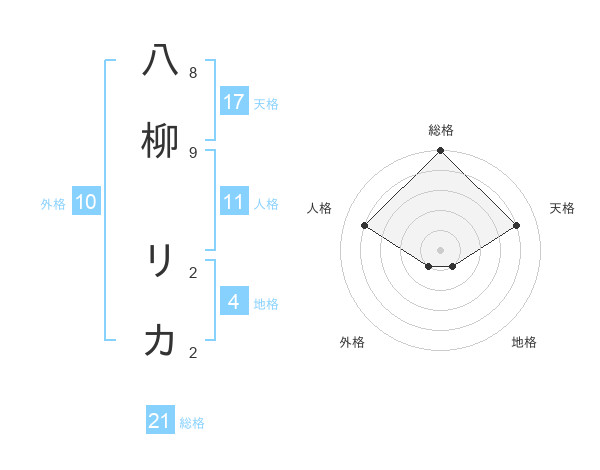 八柳 リカさんの天格は17画の4点!