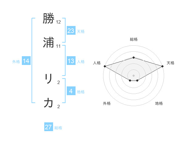勝浦 リカさんの外格は14画の1点!