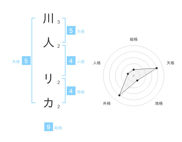 川人 リカさんの天格は5画の4点!