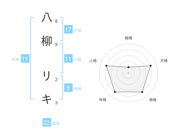 八柳 リキさんの外格は11画の4点!