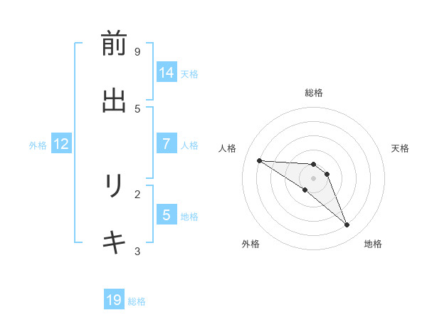 前出 リキさんの総格は19画の1点!