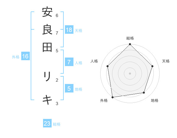 安良田 リキさんの総格は23画の5点!