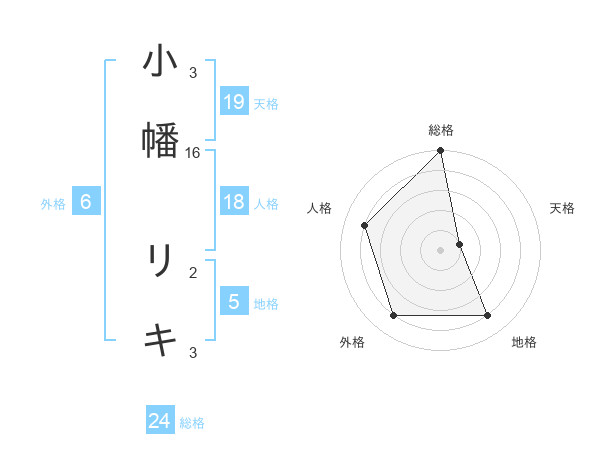 小幡 リキさんの総格は24画の5点!
