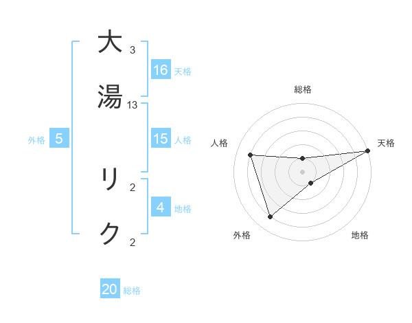 大湯 リクさんの総格は20画の1点!