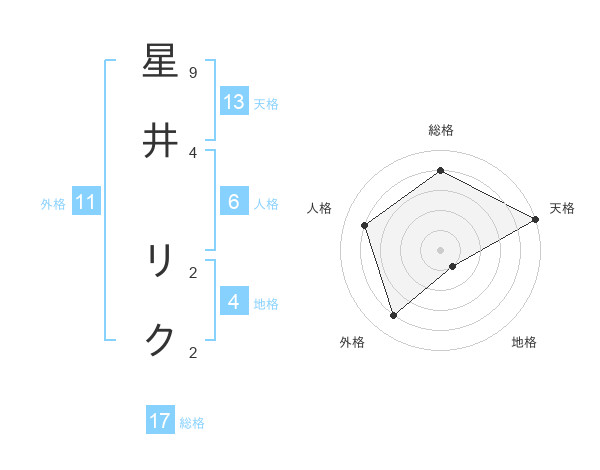 星井 リクさんの天格は13画の5点!