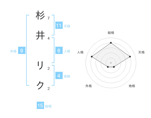杉井 リクさんの総格は15画の4点!