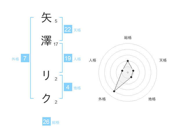 矢澤 リクさんを姓名の画数から五運を鑑定