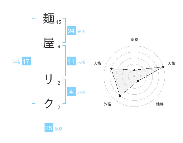 麺屋 リクさんを姓名の画数から五運を鑑定