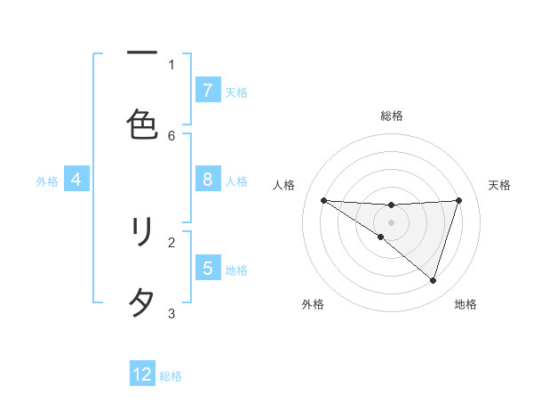 一色 リタさんの総格は12画の1点!