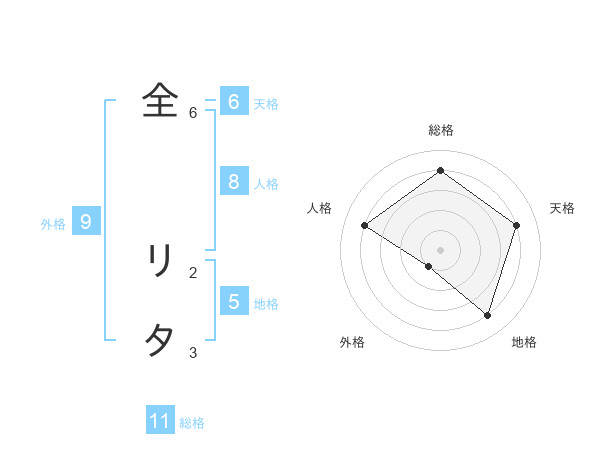 全 リタさんの総格は11画の4点!