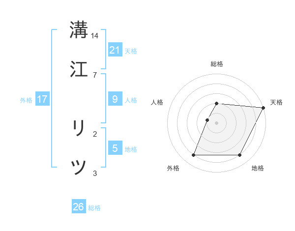 溝江 リツさんの天格は21画の5点!