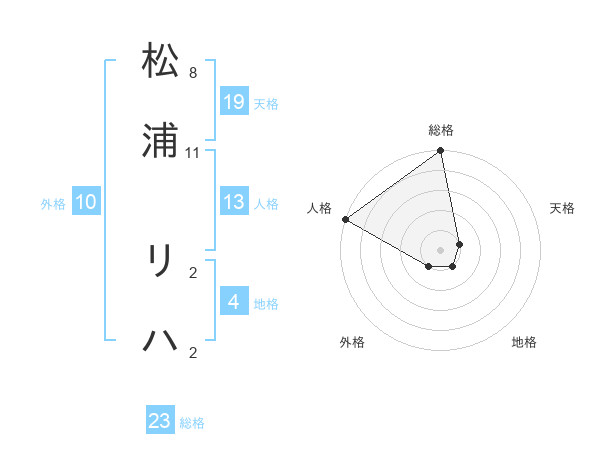松浦 リハさんの総格は23画の5点