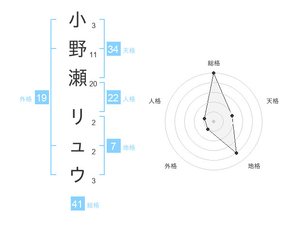 小野瀬 リュウさんを姓名の画数から五運を鑑定