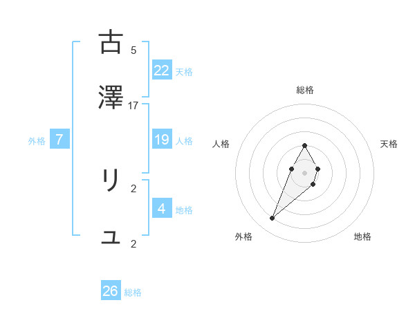 古澤 リュさんの外格は7画の4点!