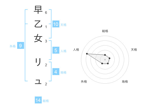 早乙女 リュさんを姓名の画数から五運を鑑定