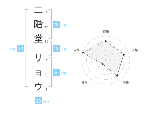 二階堂 リョウさんを姓名の画数から五運を鑑定