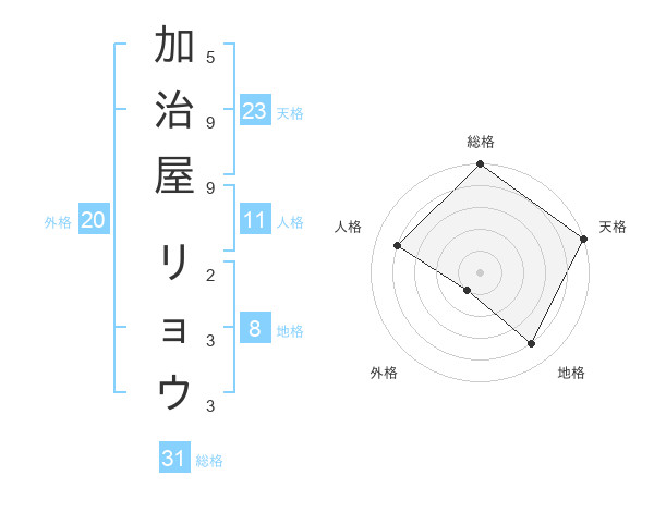 加治屋 リョウさんを姓名の画数から五運を鑑定