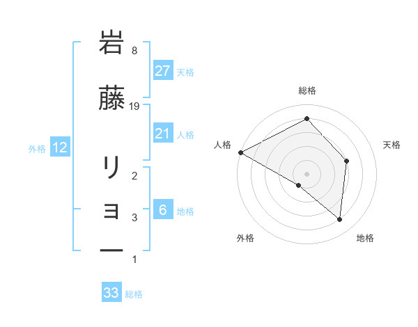 岩藤 リョーさんを姓名の画数から五運を鑑定