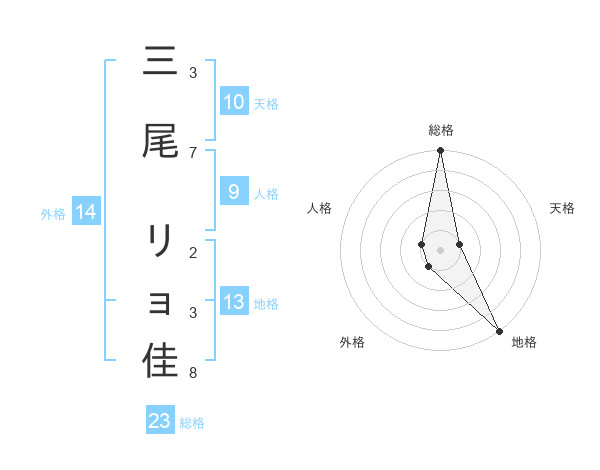 三尾 リョ佳さんを姓名の画数から五運を鑑定