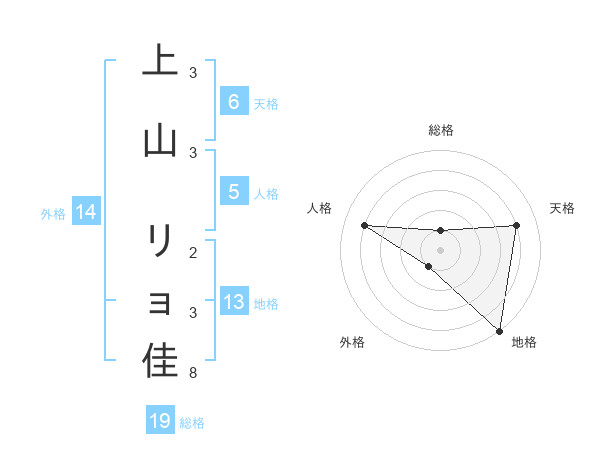 上山 リョ佳さんを姓名の画数から五運を鑑定