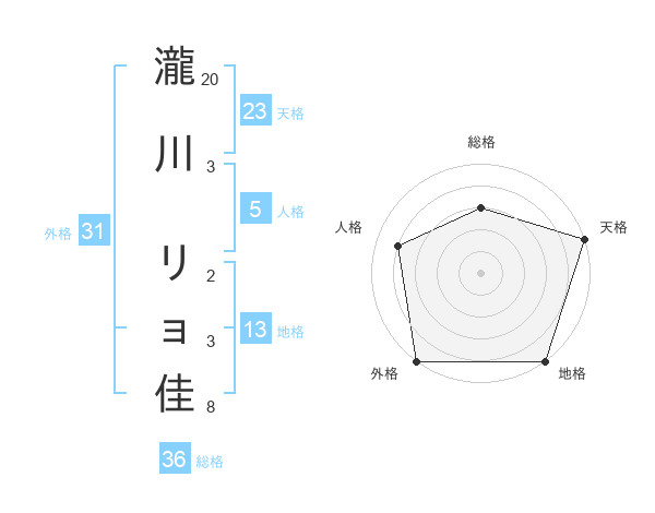 瀧川 リョ佳さんを姓名の画数から五運を鑑定