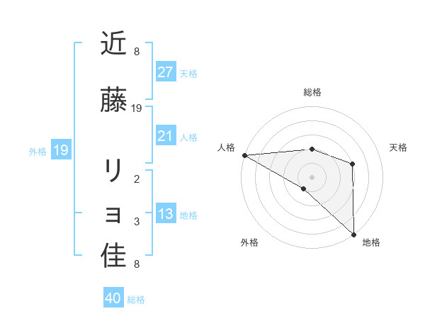近藤 リョ佳さんを姓名の画数から五運を鑑定