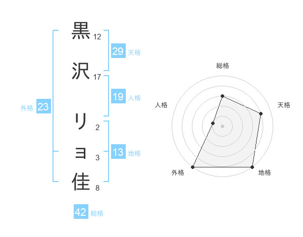 黒沢 リョ佳さんを姓名の画数から五運を鑑定