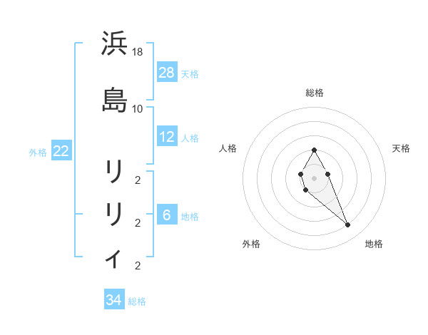 浜島 リリィさんを姓名の画数から五運を鑑定