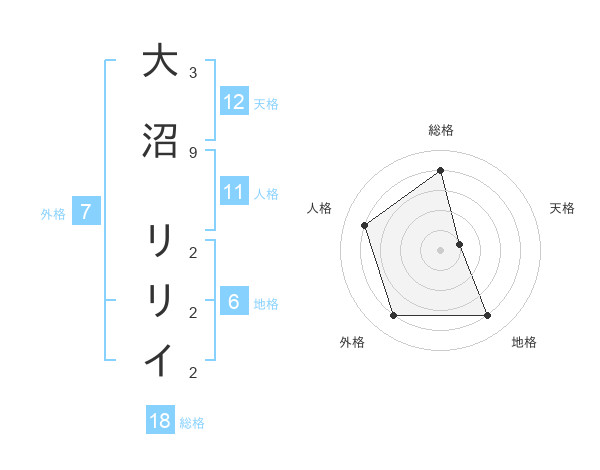 大沼 リリイさんを姓名の画数から五運を鑑定
