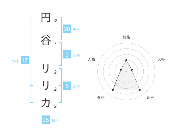 円谷 リリカさんの天格は20画の1点!