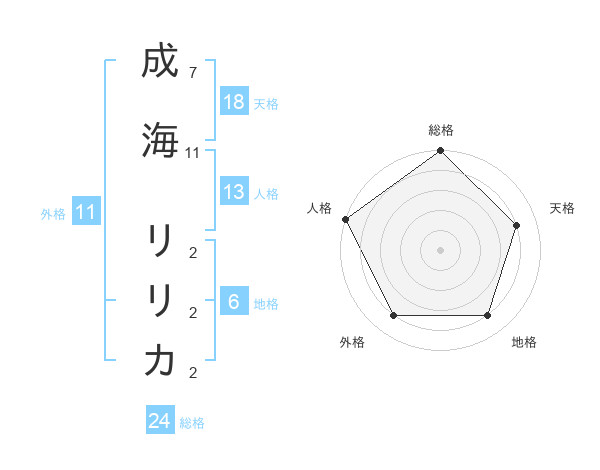 成海 リリカさんの総格は24画の5点!