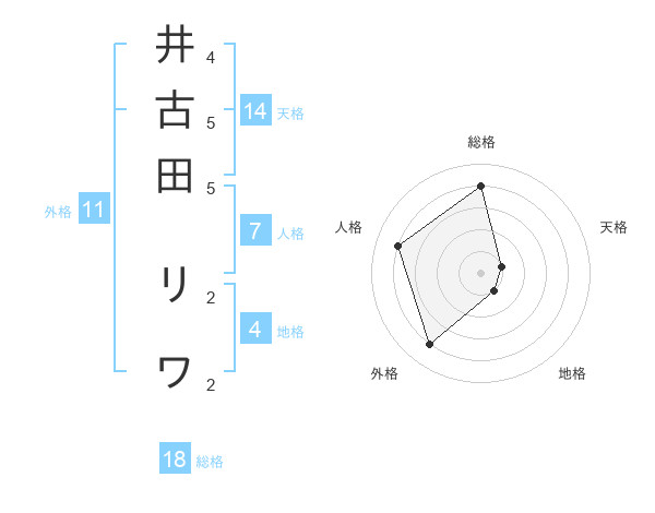 井古田 リワさんの総格は18画の4点!