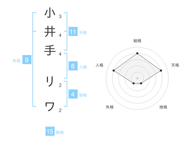 小井手 リワさんの総格は15画の4点!