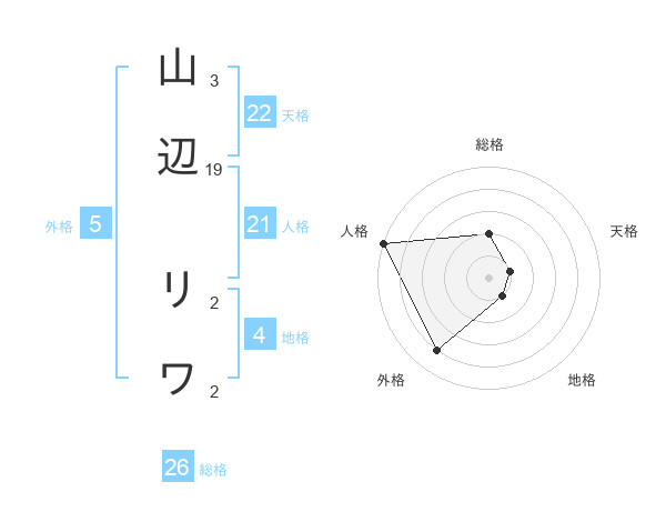 山辺 リワさんの天格は22画の1点!