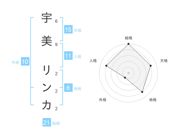 宇美 リンカさんを姓名の画数から五運を鑑定