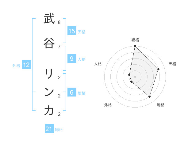 武谷 リンカさんを姓名の画数から五運を鑑定