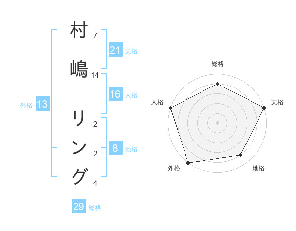 村嶋 リングさんの総格は29画の4点!