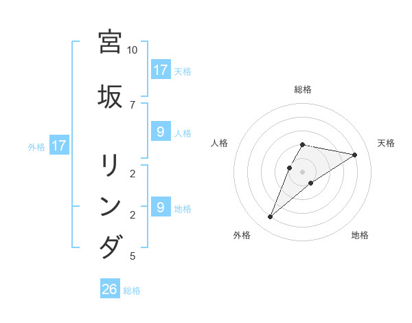 宮坂 リンダさんの天格は17画の4点
