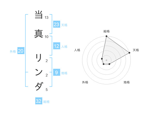 当真 リンダさんの総格は32画の5点!