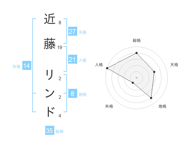 近藤 リンドさんを姓名の画数から五運を鑑定