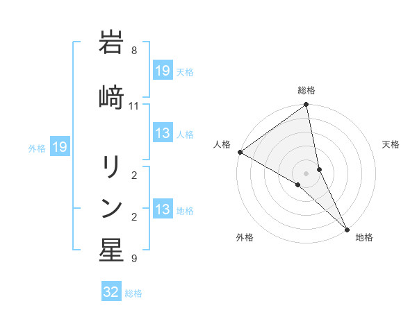 岩﨑 リン星さんを姓名の画数から五運を鑑定