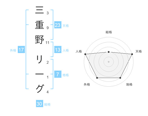 三重野 リーグさんの総格は30画の2点!