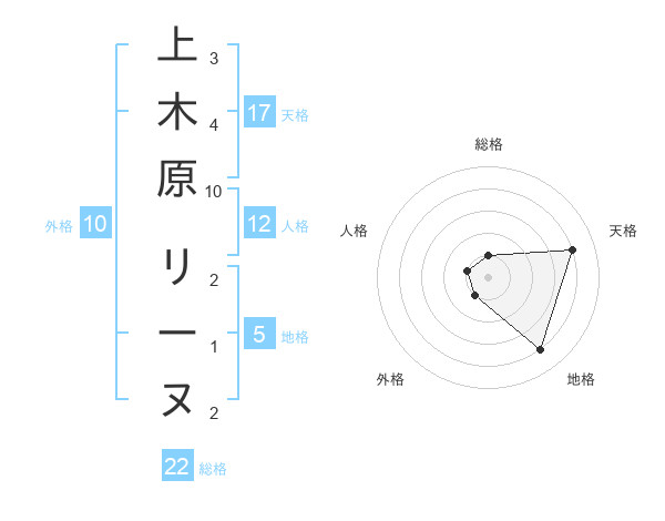 上木原 リーヌさんを姓名の画数から五運を鑑定