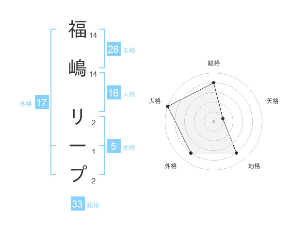 福嶋 リープさんを姓名の画数から五運を鑑定