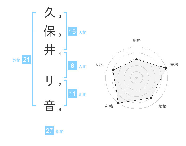 久保井 リ音さんの天格は16画の5点!