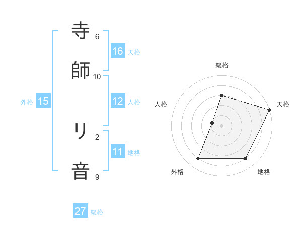 寺師 リ音さんの天格は16画の5点!