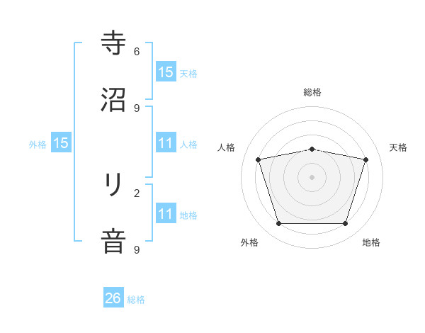 寺沼 リ音さんの外格は15画の4点!
