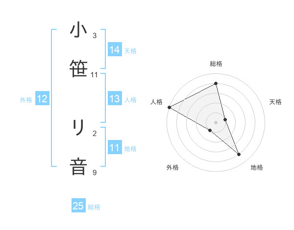 小笹 リ音さんを姓名の画数から五運を鑑定
