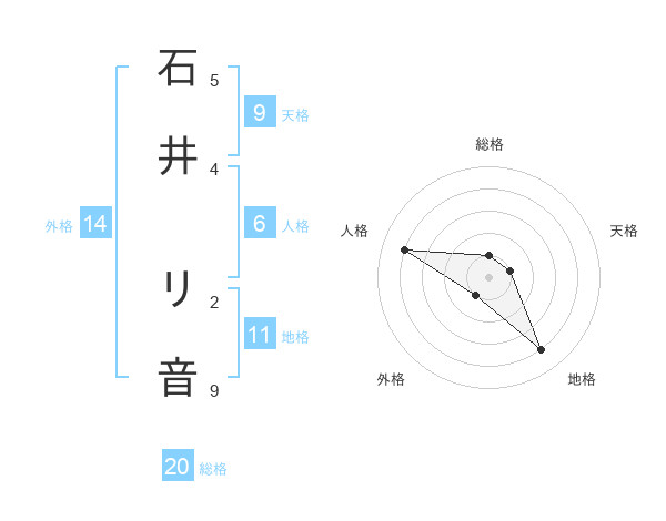 石井 リ音さんの総格は20画の1点!